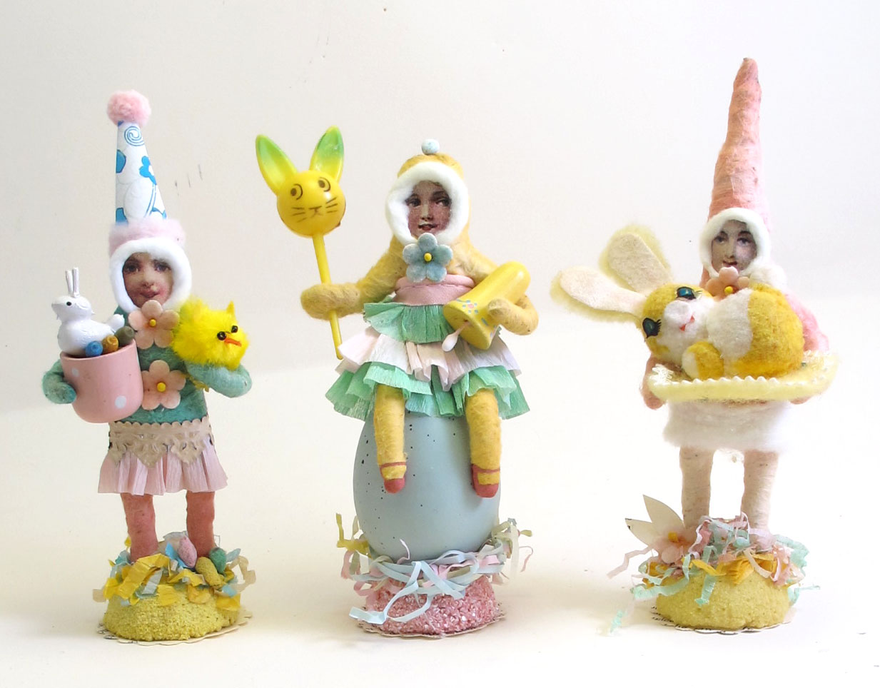 Today it's bunnies galore! I'll colors, shapes, sizes and fashion. And just in time too...because today it really feels like early spring around here. The snow is almost gone, the air is warm enough to go out without earmuffs on and I've got dreams of gardening dancing in my head. All these characters, colorful and neutral alike, can help celebrate the arrival of the new life that spring will surely bring this year starting with a little life inside the house. I hope you enjoy them! :)
