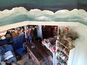 This is the before shot. I painted the base of the mural three years ago when we first moved in and have been working under this unfinished sky all this time.